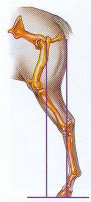 De benen worden achter de verticale lijn geplaatst. De verticale lijn valt voor het spronggewricht en pijpbeen. Het heupgewricht heeft een grotere hoek.