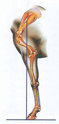 De voorbenen staan achter de verticale lijn.