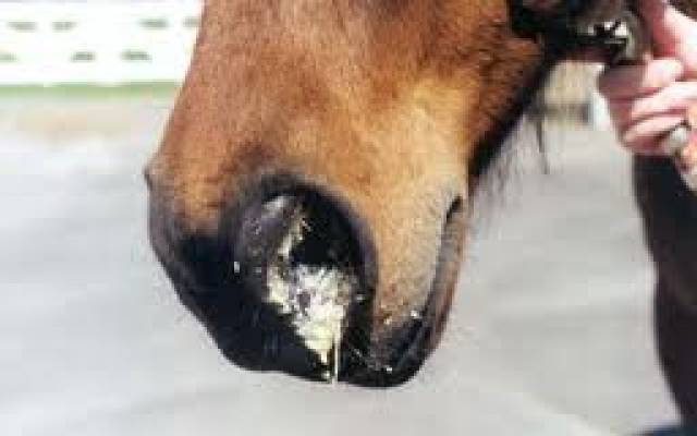 - In het begin heeft het paard last van keelpijn omdat het slijmvlies in de keel gezwollen en pijnlijk is. Hierdoor kunnen ze moeilijk slikken. In deze fase heeft het paard een typische lichaamshouding: